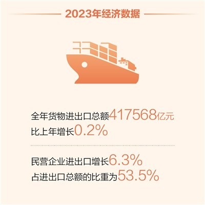 國際循環(huán)質(zhì)量和水平進(jìn)一步提升。面對外需收縮等不利影響,我國加力推動外貿(mào)穩(wěn)規(guī)模、優(yōu)結(jié)構(gòu),出口實(shí)現(xiàn)正增長,國際市場份額保持總體穩(wěn)定。同時,積極拓展國際經(jīng)貿(mào)合作,2023年我國對共建“一帶一路”國家進(jìn)出口總額比上年增長2.8%。