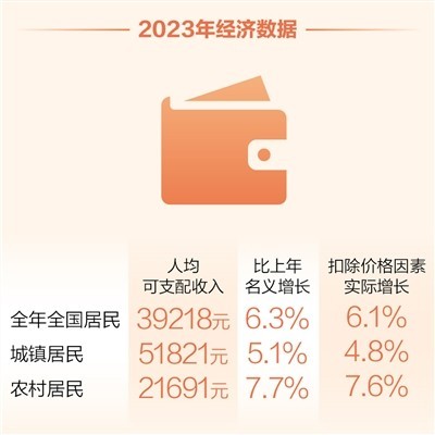 人民生活進(jìn)一步改善。2023年,居民人均可支配收入同比實(shí)際增長6.1%,城鄉(xiāng)居民收入穩(wěn)定增長。電力、熱力、燃?xì)饧八纳a(chǎn)和供應(yīng)業(yè)投資增長23%,農(nóng)業(yè)投資增長9.3%,快于全部投資,民生投入力度不斷加大。