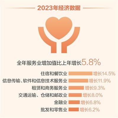 高質(zhì)量發(fā)展“活力足”。2023年服務(wù)業(yè)增加值占國內(nèi)生產(chǎn)總值比重為54.6%,對經(jīng)濟(jì)增長的貢獻(xiàn)率超過60%,經(jīng)濟(jì)結(jié)構(gòu)不斷優(yōu)化。制造業(yè)技改投資增長3.8%,高技術(shù)產(chǎn)業(yè)投資增長10.3%,動能轉(zhuǎn)換提檔升級。我國正在持續(xù)推動形成創(chuàng)新驅(qū)動發(fā)展的新局面,中國經(jīng)濟(jì)在加快培育新質(zhì)生產(chǎn)力中不斷發(fā)展壯大。