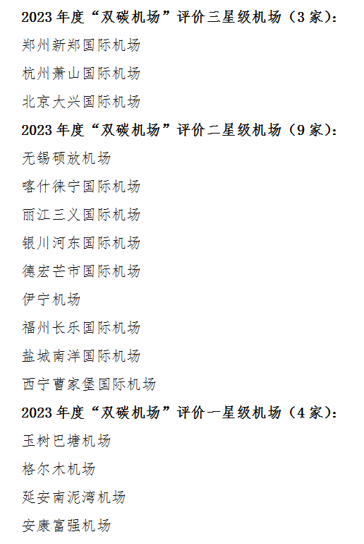 2023年度“雙碳機場”評價結果。(圖片由中國民用機場協(xié)會提供)