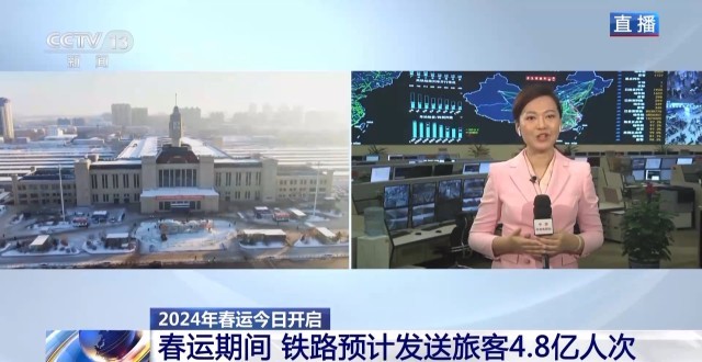 總臺央視記者 陳晰:40天春運,全國鐵路預計發(fā)送旅客4.8億人次,日均1200萬人次。今天是春運首日,全國鐵路預計發(fā)送旅客1060萬人次。2024年春運的火車票預售已經(jīng)從1月12日開始發(fā)售,從目前的售票情況來看,旅客出行需求旺盛。