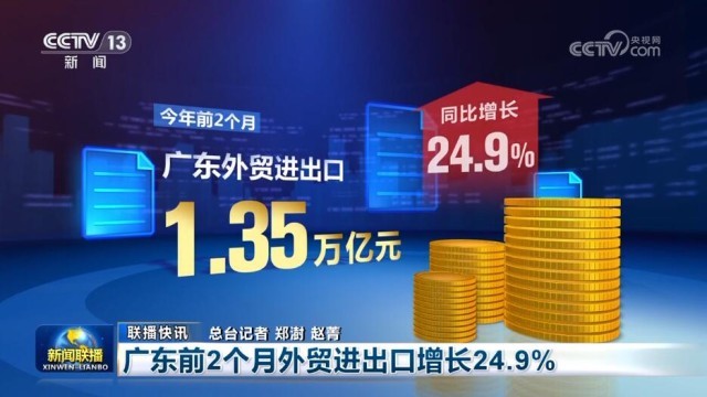 今年前兩個月,廣東外貿(mào)進出口1.35萬億元,同比增長24.9%。其中,出口8859.4億元,增長26.8%;進口4624億元,增長21.5%。其中,民營企業(yè)占比提升,前兩個月,廣東民營企業(yè)進出口占廣東進出口總值的63.8%。