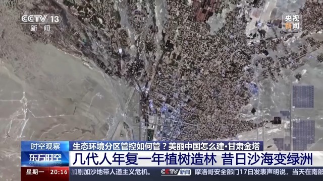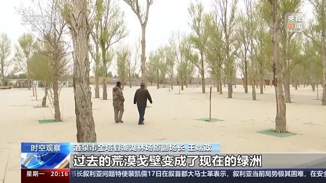 甘肅酒泉金塔縣潮湖林場副場長 王端政:過去的沙進人退變成了現(xiàn)在的人進沙退,過去的荒漠戈壁變成了現(xiàn)在的綠洲,現(xiàn)在金塔的生態(tài)環(huán)境得到了很大的改善。