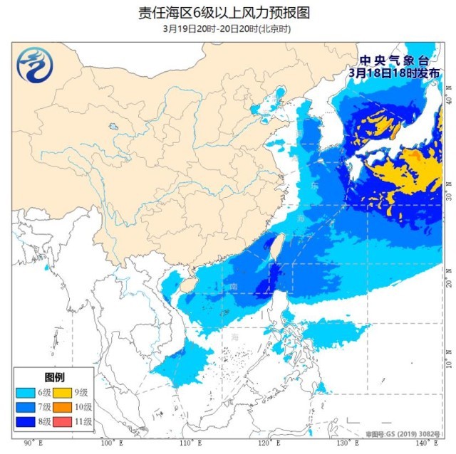 預(yù)計,19日白天至21日白天,東海南部海域、臺灣海峽、臺灣以東洋面、巴士海峽、南海大部海域、北部灣將有6~7級,陣風8級的偏北或東北風,其中臺灣海峽、巴士海峽、南海東北部部分海域風力可達8級、陣風9-10級。