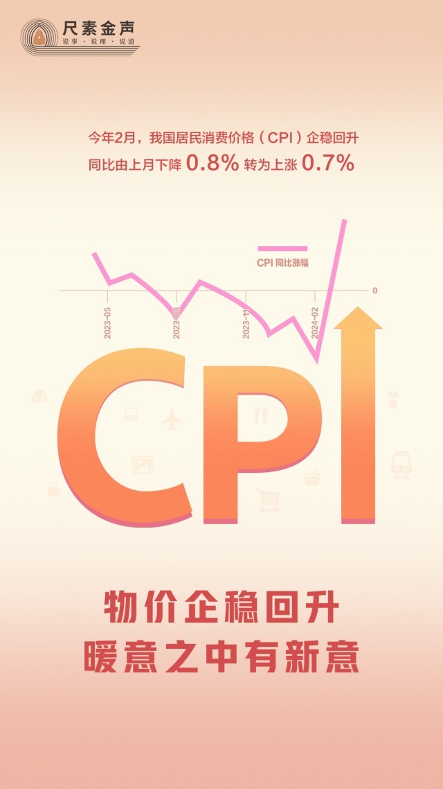 國(guó)家統(tǒng)計(jì)局發(fā)布的最新數(shù)據(jù)顯示,今年2月,我國(guó)居民消費(fèi)價(jià)格(CPI)企穩(wěn)回升,同比由上月下降0.8%轉(zhuǎn)為上漲0.7%,其中扣除食品和能源價(jià)格的核心CPI漲幅為2022年2月以來(lái)最高。
