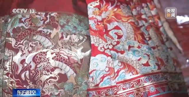 魏平安:因?yàn)榻衲赀^(guò)年是龍年,我們特意設(shè)計(jì)了兩款比較好看的龍圖案馬面裙,沒(méi)想到它們兩個(gè)都爆了。這款就是比較直接一點(diǎn),就是有一個(gè)很大的龍的刺繡加了一些龍紋,加了一些花、牡丹花之類(lèi)的。