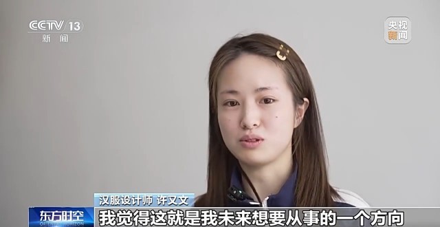 漢服設(shè)計(jì)師 許又文:像國(guó)外有很多成熟的品牌都是立足于自己的優(yōu)秀文化,那我覺(jué)得這就是我未來(lái)想要從事的一個(gè)方向。