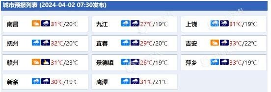 江西各城市天氣預(yù)報。(來源:中國天氣網(wǎng))