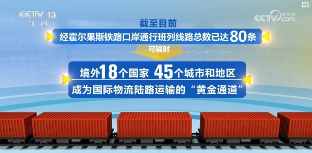 記者從霍爾果斯鐵路口岸了解到,2016年以來到2024年3月底,經(jīng)霍爾果斯海關(guān)監(jiān)管的中歐(中亞)班列總量已超過3.5萬列,通行班列線路總數(shù)達(dá)80條,可輻射境外18個(gè)國家、45個(gè)城市和地區(qū)。