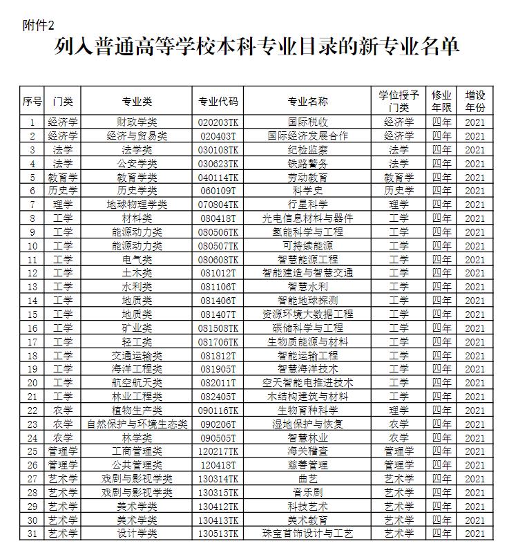教育部:31種新專業(yè)列入《普通高等學校本科專業(yè)目錄》