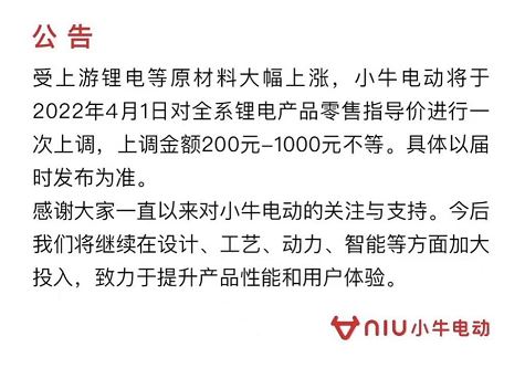 小牛電動(dòng)全系鋰電產(chǎn)品將漲價(jià) 上調(diào)200-1000元不等