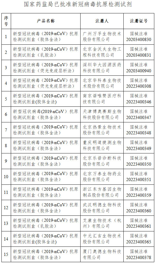 據(jù)國家藥監(jiān)局網(wǎng)站消息,4月20日,國家藥監(jiān)局再次審查批準(zhǔn)2個(gè)新冠病毒抗原檢測試劑產(chǎn)品。至此,國家藥監(jiān)局已批準(zhǔn)29個(gè)新冠病毒抗原檢測試劑產(chǎn)品。