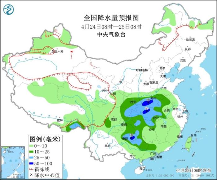 圖3 全國降水量預報圖(4月24日08時-25日08時)