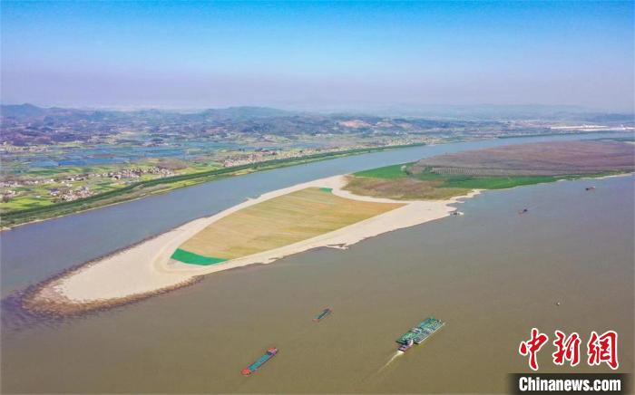 中新網(wǎng)武漢4月26日電 (陳宇)正值春季,武漢至安慶段6米水深航道整治工程Ⅴ標(biāo)段老虎灘生態(tài)固灘,水清岸綠、河暢景美、沙鷗翔集,整治工程生態(tài)建設(shè)效果初顯。