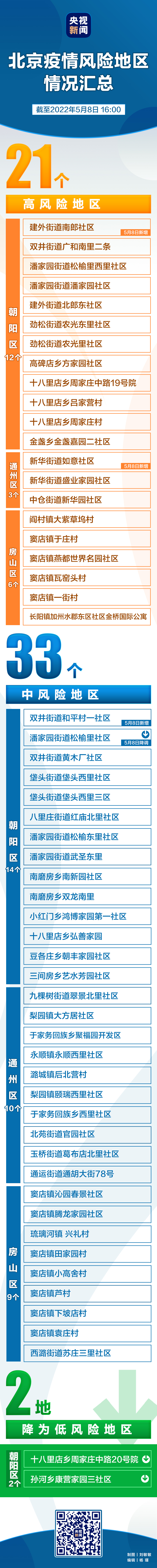 截至目前,北京全市共有高風(fēng)險地區(qū)21個,中風(fēng)險地區(qū)33個。