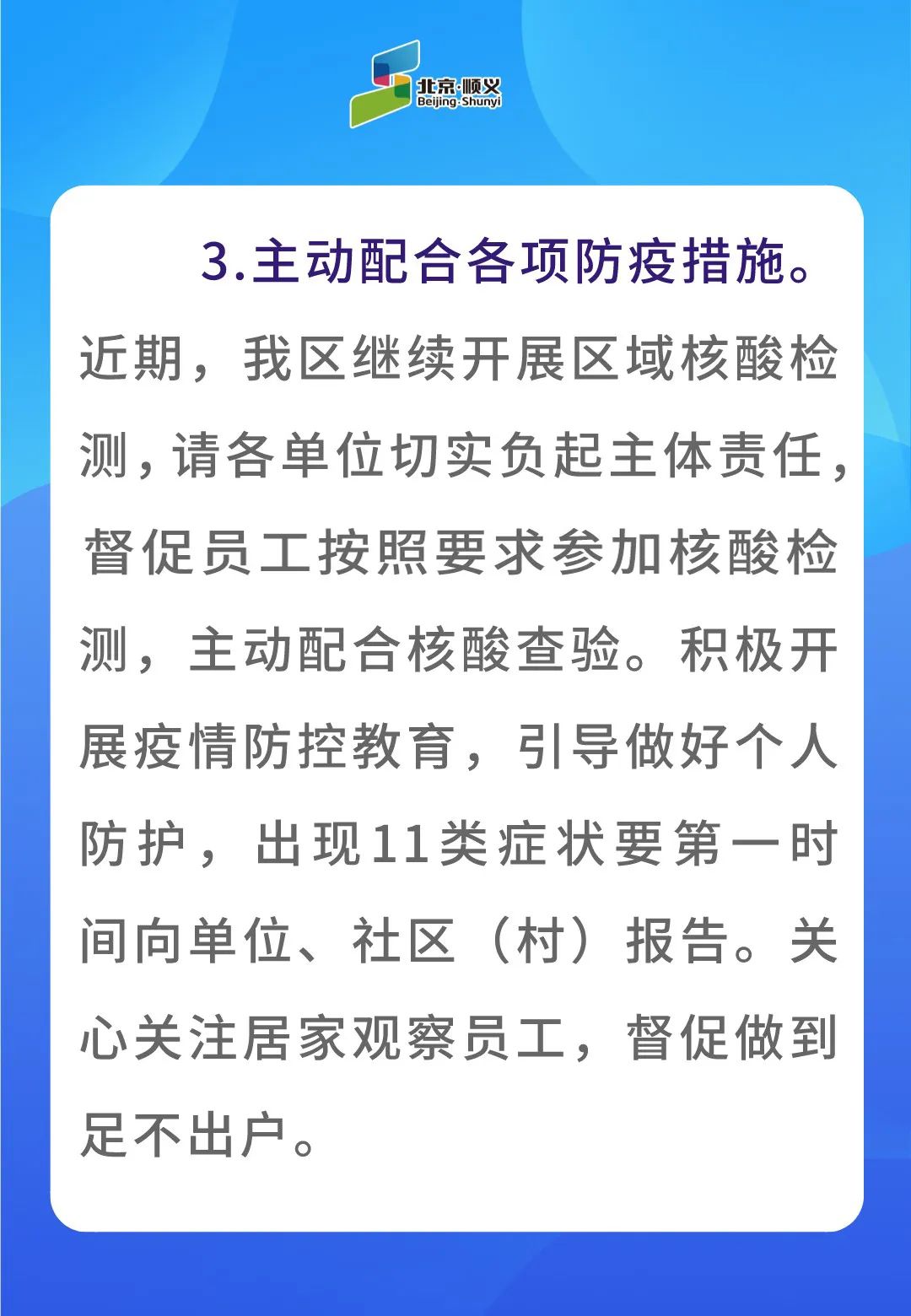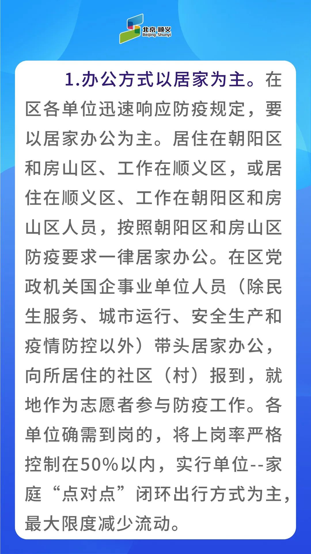 中新網5月8日電 據“北京順義”微信公眾號消息,5月8日,順義區(qū)發(fā)布《順義區(qū)關于進一步加強疫情防控減少人員流動的通告》指出,為盡早實現(xiàn)社會面清零目標,自5月9日至5月15日,在區(qū)各單位請嚴格落實以居家辦公為主等各項防控措施,非必要不出順,非必要不來順,減少人員流動。