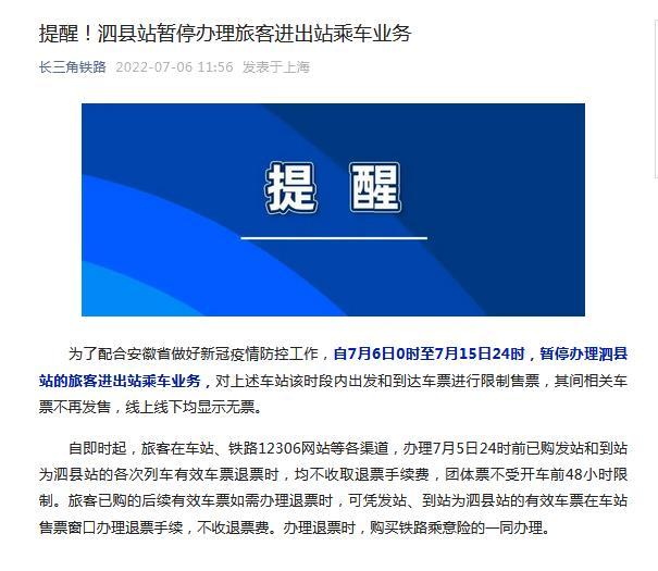 - 提醒!安徽泗縣站暫停辦理旅客進(jìn)出站乘車業(yè)務(wù)