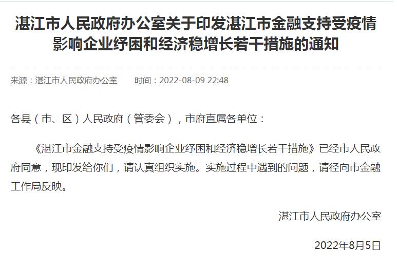 中新網(wǎng)8月10日電 廣東省湛江市人民政府網(wǎng)站9日發(fā)布《關(guān)于印發(fā)湛江市金融支持受疫情影響企業(yè)紓困和經(jīng)濟穩(wěn)增長若干措施的通知》,提及促進房地產(chǎn)市場平穩(wěn)健康發(fā)展金融服務(wù)等方面的措施。