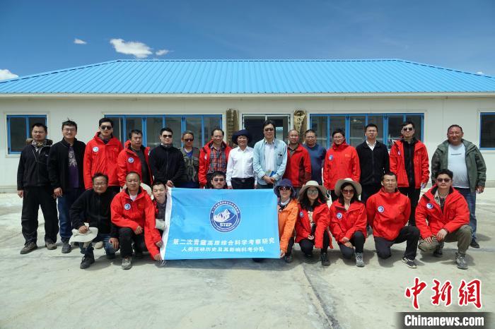 第二次青藏科考“人類(lèi)活動(dòng)歷史及其影響”分隊(duì)到訪中科院青藏高原所阿里站合影?!≈行律缬浾?孫自法 攝