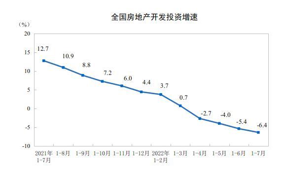 國家統(tǒng)計局:前7月全國房地產開發(fā)投資同比下降6.4%