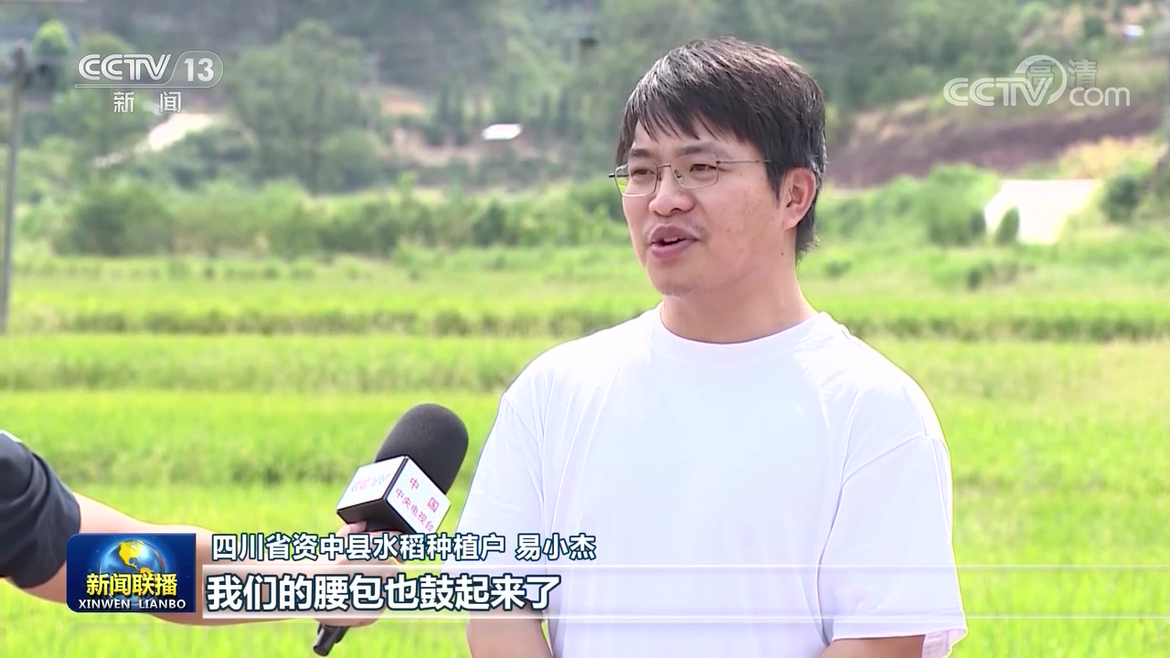 四川省資中縣水稻種植戶 易小杰:全程實行機械化耕種,產(chǎn)量也上去了,我們的腰包也鼓起來了。