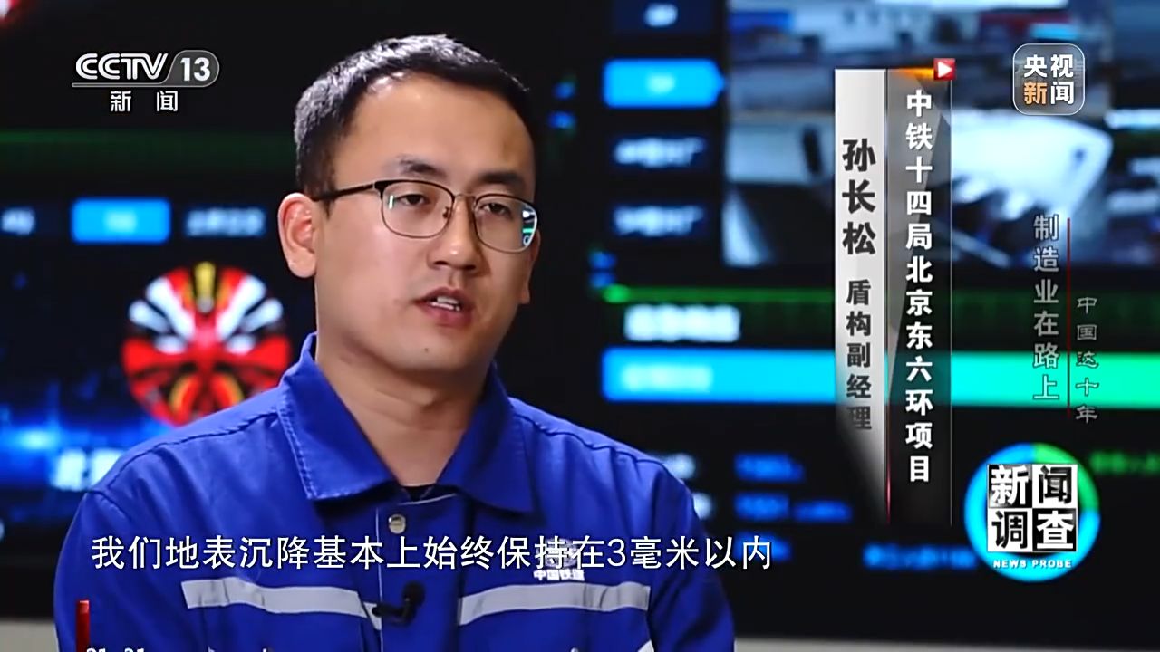 孫長(zhǎng)松 中鐵十四局北京東六環(huán)項(xiàng)目盾構(gòu)副經(jīng)理:我們盾構(gòu)機(jī)開挖直徑是16米07,我們地表沉降基本上始終保持在3毫米以內(nèi)。