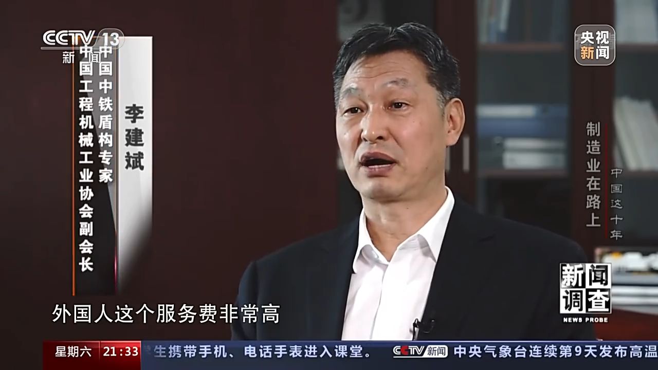 中國(guó)工程機(jī)械工業(yè)協(xié)會(huì)副會(huì)長(zhǎng) 中國(guó)中鐵盾構(gòu)專家 李建斌:兩臺(tái)將近七個(gè)億,外國(guó)人這個(gè)服務(wù)費(fèi)非常高,服務(wù)的時(shí)間非常短,每天就是八小時(shí),過了人家不上班,我們是三班制,他是一班制,機(jī)器壞了我們就要等,這個(gè)是對(duì)我們刺激非常大,你不掌握技術(shù),所以說你處處受制于人。