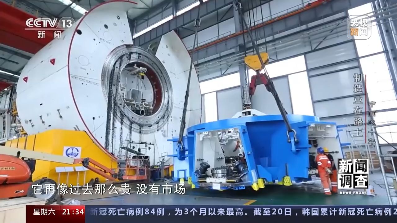 國(guó)際上,盾構(gòu)機(jī)施工的標(biāo)準(zhǔn)一般是沉降不超過30毫米,隆起不超過10毫米,這臺(tái)中國(guó)盾構(gòu)機(jī)的控制精度遠(yuǎn)高于國(guó)際標(biāo)準(zhǔn)。今天,中國(guó)隧道工程中使用的盾構(gòu)機(jī)90%以上都是國(guó)產(chǎn),在全球,中國(guó)盾構(gòu)機(jī)的市場(chǎng)份額已接近70%。讓人難以想象的是,就在20年前,中國(guó)還沒有一臺(tái)自己的盾構(gòu)機(jī),可以用于這樣的工程。盾構(gòu)機(jī),它的正式名稱叫做全斷面隧道掘進(jìn)機(jī)。一臺(tái)盾構(gòu)機(jī)包含上萬個(gè)零部件,產(chǎn)業(yè)鏈涉及機(jī)械制造、電子元器件、液壓管路等多個(gè)工業(yè)領(lǐng)域,因?yàn)橄到y(tǒng)復(fù)雜、集成度高,也有人把它稱為機(jī)械制造皇冠上的明珠。