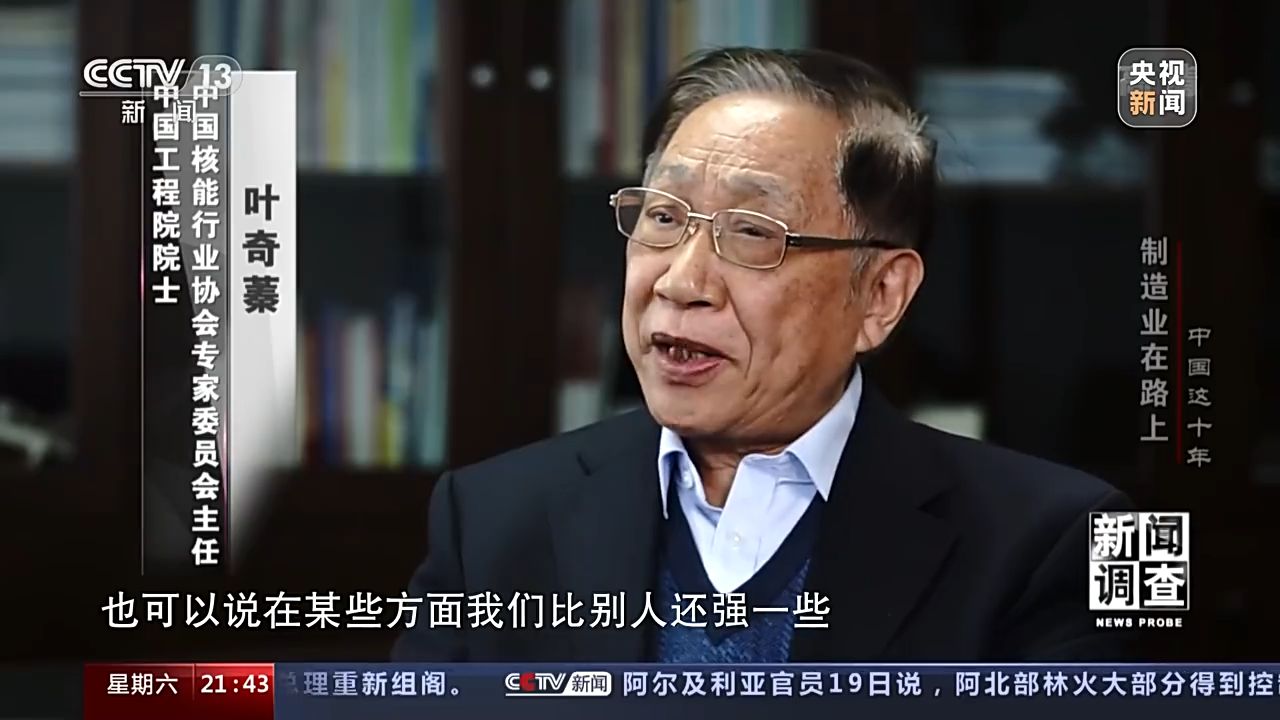 中國(guó)工程院院士 中國(guó)核能行業(yè)協(xié)會(huì)專家委員會(huì)主任 葉奇蓁:從總的技術(shù)水平可以這樣說,我們已經(jīng)從跟跑進(jìn)入了并跑,也可以說在某些方面我們比別人還強(qiáng)一些。