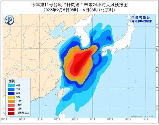 “軒嵐諾”預(yù)計(jì)5日下午越過(guò)上海同緯度。受其影響,5日上海內(nèi)陸地區(qū)最大陣風(fēng)7-9級(jí),沿海沿江地區(qū)和長(zhǎng)江口區(qū)最大陣風(fēng)9-11級(jí)。