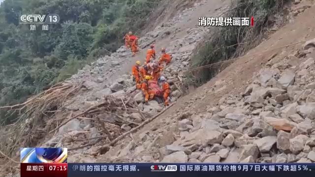 在通過第一個垮塌點以后,消防員徒步翻越第二個角度更加垂直的垮塌點轉移被困群眾。