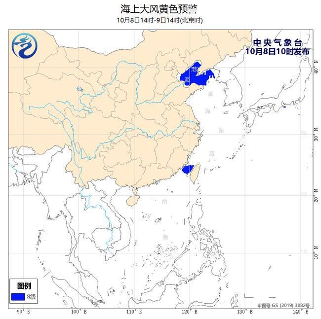 中央氣象臺10月8日10時繼續(xù)發(fā)布海上大風黃色預警: