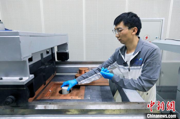 中國錦屏地下實驗室內(nèi),科研助理景明坤正在對樣本進行輻射檢測?!⊥趵?攝