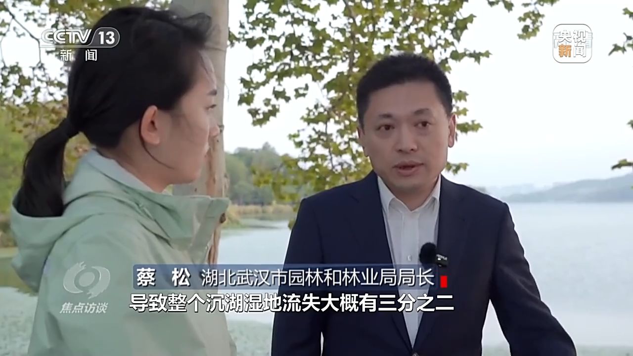 湖北武漢市園林和林業(yè)局局長 蔡松:圍湖造田、養(yǎng)魚,導致整個沉湖濕地流失大概有三分之二,比較嚴重。從2013年開始,武漢市加大對沉湖濕地的整治力度,通過生態(tài)補償?shù)姆绞?,整個退漁還濕達到了7.8萬畝。