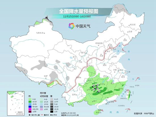 明天將是降雨最強(qiáng)的一天,新疆北部、西藏北部和東部、青海南部等地部分地區(qū)有小到中雪,其中,新疆北疆北部和伊犁河谷局地有大雪。江淮西部、江南中東部和西南部、華南西部等地部分地區(qū)有中到大雨,其中,廣西東北部等地局地有暴雨。