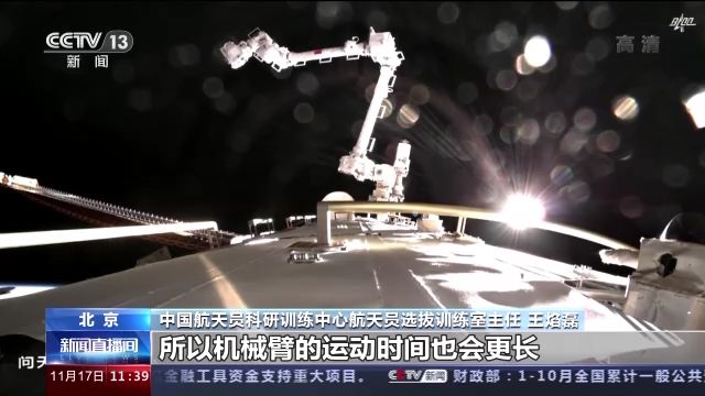 中國航天員科研訓(xùn)練中心航天員選拔訓(xùn)練室主任 王焰磊:我們首次使用兩個(gè)機(jī)械臂,就是大臂小臂形成組合臂的狀態(tài)下支持出艙活動(dòng)任務(wù)。因?yàn)榇蠹铱梢韵胂笠幌?,單臂的長度已經(jīng)很長了,那么兩個(gè)臂組合以后長度更長,它的柔性、剛性等和我們單臂狀態(tài)下是有一些區(qū)別的。在這種情況下載人去支持完成出艙任務(wù),也是我們做首次的一個(gè)驗(yàn)證。