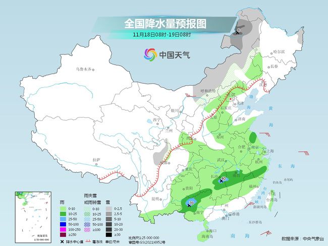 中國(guó)天氣網(wǎng)訊 昨天(11月17日)開始,新一股冷空氣自新疆開始自西向東逐漸影響我國(guó)其它地區(qū),今明兩天,長(zhǎng)江以北地區(qū)將陸續(xù)迎來(lái)明顯降溫,華北、東北等地還會(huì)有雨雪天氣現(xiàn)身,局地降水猛烈。而在南方,今明兩天,雨水也將繼續(xù)營(yíng)業(yè),20日短暫“調(diào)休”一天,21日至22日,新一輪降雨又將上線,幾乎無(wú)縫銜接。