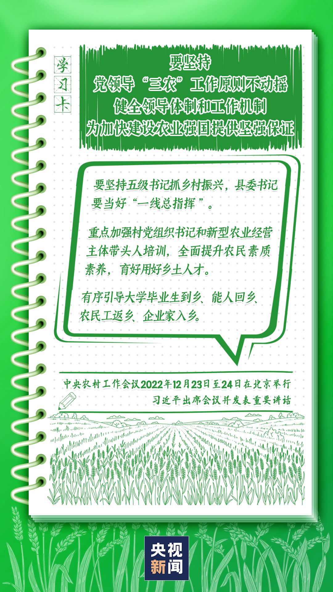 中央農(nóng)村工作會(huì)議12月23日至24日在北京舉行。習(xí)近平總書(shū)記出席會(huì)議并發(fā)表重要講話強(qiáng)調(diào),錨定建設(shè)農(nóng)業(yè)強(qiáng)國(guó)目標(biāo),切實(shí)抓好農(nóng)業(yè)農(nóng)村工作。如何建設(shè)農(nóng)業(yè)強(qiáng)國(guó)?總書(shū)記給出了“路線圖”,一起學(xué)習(xí)↓