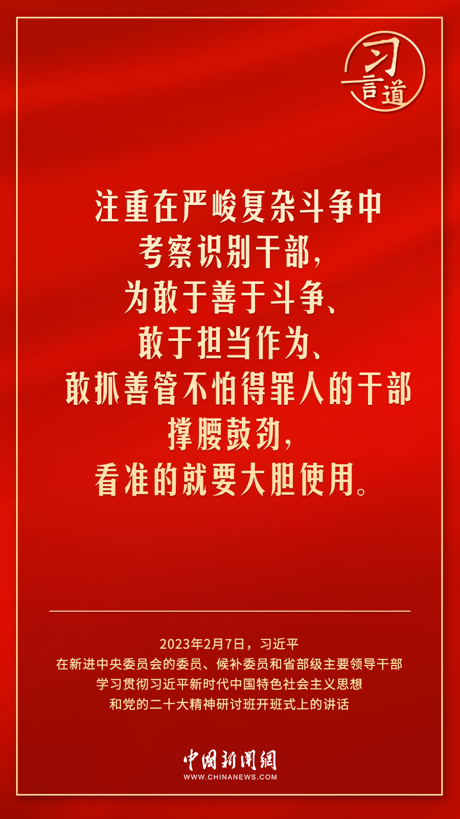 新進中央委員會的委員、候補委員和省部級主要領(lǐng)導(dǎo)干部學(xué)習(xí)貫徹習(xí)近平新時代中國特色社會主義思想和黨的二十大精神研討班2月7日上午在中央黨校(國家行政學(xué)院)開班。中共中央總書記、國家主席、中央軍委主席習(xí)近平在開班式上發(fā)表重要講話,他強調(diào)——