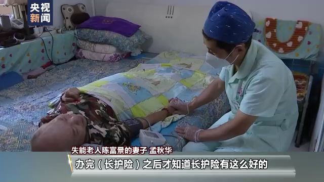 失能老人陳富景的妻子 孟秋華:護理員一來就幫他揉,我就輕松多了,白天來的好幾個小時我能休息,辦完長護險后才知道長護險這么好,又解決家庭經(jīng)濟困難,還有人幫著照顧,我說老頭子有救了。