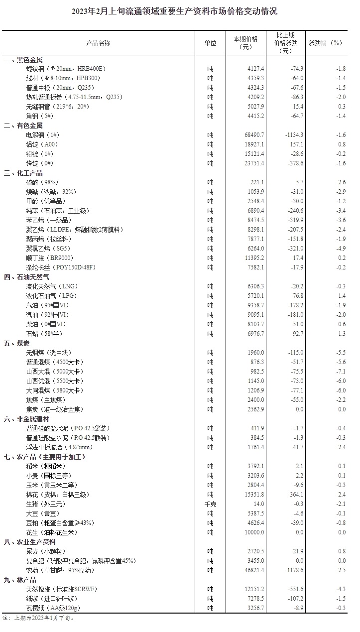 中新網(wǎng)2月14日電 據(jù)國(guó)家統(tǒng)計(jì)局網(wǎng)站14日消息,據(jù)對(duì)全國(guó)流通領(lǐng)域9大類(lèi)50種重要生產(chǎn)資料市場(chǎng)價(jià)格的監(jiān)測(cè)顯示,2023年2月上旬與1月下旬相比,12種產(chǎn)品價(jià)格上漲,35種下降,3種持平。其中,生豬(外三元)價(jià)格為14元/千克,較1月下旬相比下降2.1%。(中新財(cái)經(jīng))