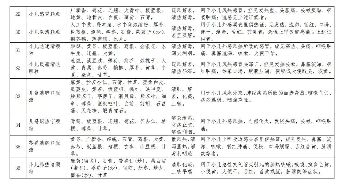 2023年春季流感治療相關中成藥目錄