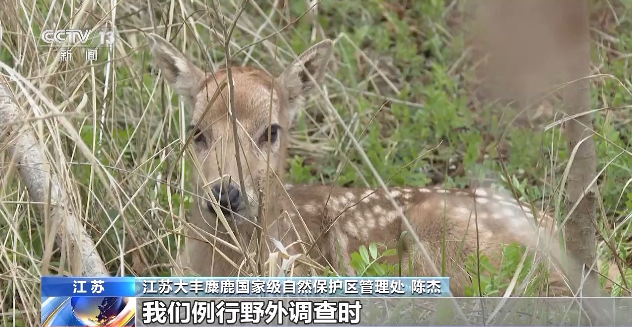 江蘇大豐麋鹿國家級自然保護區(qū)管理處 陳杰:我們例行野外巡查時發(fā)現(xiàn)了這頭小鹿,這是我們今年第一頭新生小鹿,每年的3月初,麋鹿開始產(chǎn)仔,到5月份會達到一個高峰期。