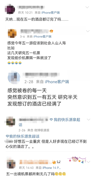 社交平臺(tái)上,多名網(wǎng)友早已規(guī)劃好了自己“五一”出行的計(jì)劃,并已提前購買機(jī)票和酒店,面對(duì)緊俏的旅游產(chǎn)品,有網(wǎng)友驚呼:“現(xiàn)在就已經(jīng)訂不到房了嗎?”“低價(jià)機(jī)票隔一會(huì)兒就沒了!”