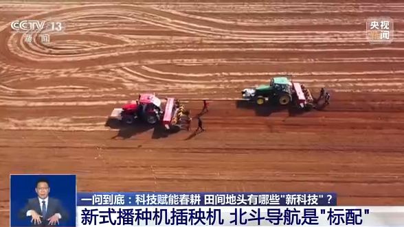 我們先去新疆看看——自帶北斗導(dǎo)航的播種機。在新疆昌吉瑪納斯縣六戶地鎮(zhèn)的千畝春小麥種植基地,裝有北斗導(dǎo)航系統(tǒng)的大馬力拖拉機,帶著改良后的新式播種機,正在進行春小麥播種。這種播種機可按照預(yù)先設(shè)定的線路進行精量播種,而且覆土、鋪設(shè)滴灌帶也同步完成,不僅實現(xiàn)了全程機械化,還提高了作業(yè)精度和效率,每天可比傳統(tǒng)播種機多播50畝地左右。