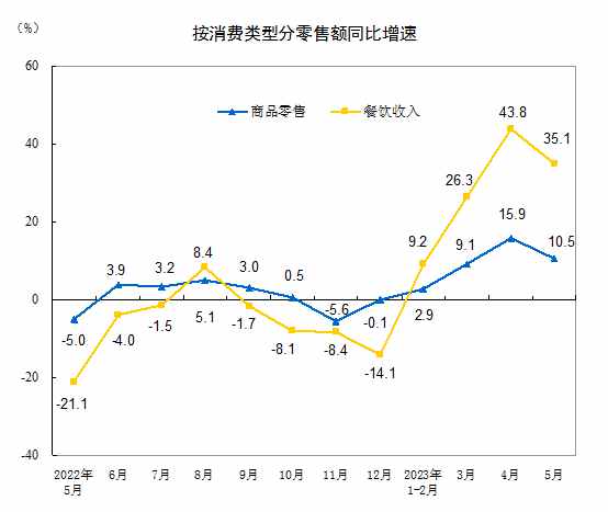 國(guó)家統(tǒng)計(jì)局:2023年5月份社會(huì)消費(fèi)品零售總額增長(zhǎng)12.7%
