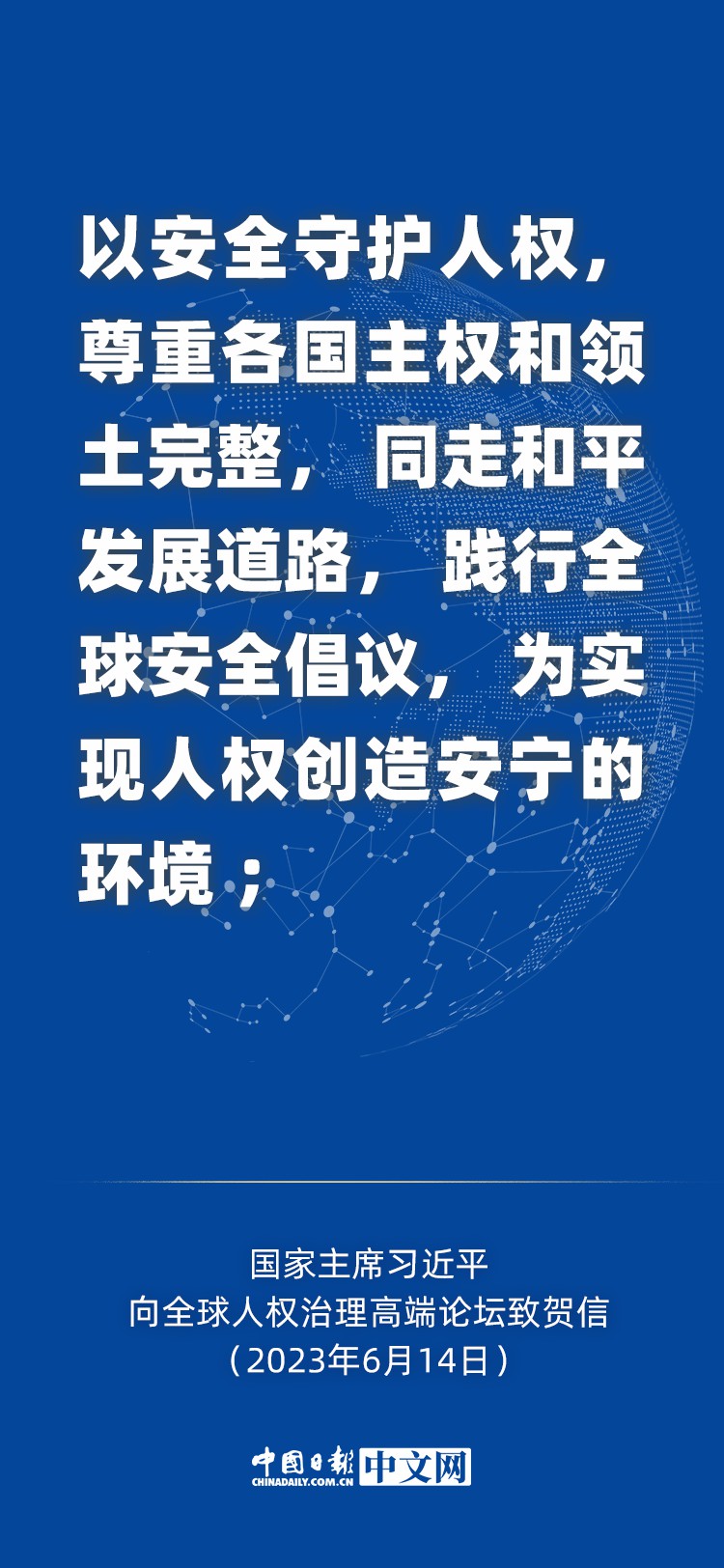 6月14日,國家主席習近平向全球人權治理高端論壇致賀信。習近平指出,當前,人類又一次站在歷史的十字路口,全球人權治理面臨嚴峻挑戰(zhàn)。我們主張: