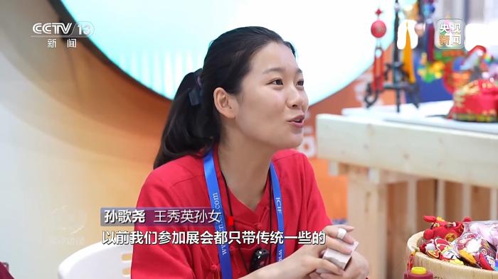 王秀英孫女孫歌堯:不僅在外觀上,技術(shù)上也要?jiǎng)?chuàng)新。我們把3D打板加明暗敲針,我們有6項(xiàng)計(jì)算機(jī)軟件著作權(quán),運(yùn)用到香包上面可以提高30%到50%的生產(chǎn)效率。以前我們參加展會(huì)都只帶傳統(tǒng)一些的,這一次是帶我創(chuàng)新的品牌來參展。