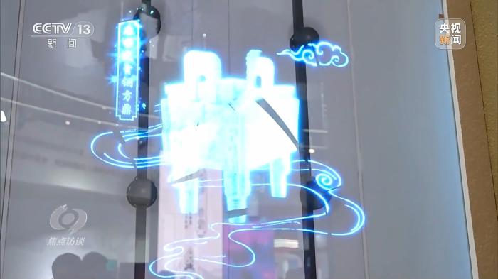 在AI繪畫一旁,國家級(jí)保護(hù)文物司母戊大方鼎、青銅縱目面具、四羊方尊、越王勾踐劍、曾侯乙編鐘等正以數(shù)字化形式呈現(xiàn)在觀眾面前。參展商通過數(shù)字孿生技術(shù)復(fù)現(xiàn)或重構(gòu)文物和文化遺產(chǎn)的數(shù)字鏡像,從而實(shí)現(xiàn)文物和文化遺產(chǎn)的保護(hù)、修復(fù)直至永久性保存和活態(tài)化傳承。觀眾既可以看到部分真實(shí)的復(fù)制文物和文化遺產(chǎn),又可以體驗(yàn)虛擬的數(shù)字文物和文化遺產(chǎn),虛實(shí)之間,體會(huì)數(shù)字化給傳統(tǒng)文物和文化遺產(chǎn)帶來的生命力。