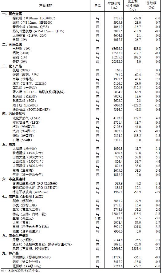 2023年6月下旬流通領(lǐng)域重要生產(chǎn)資料市場價格變動情況